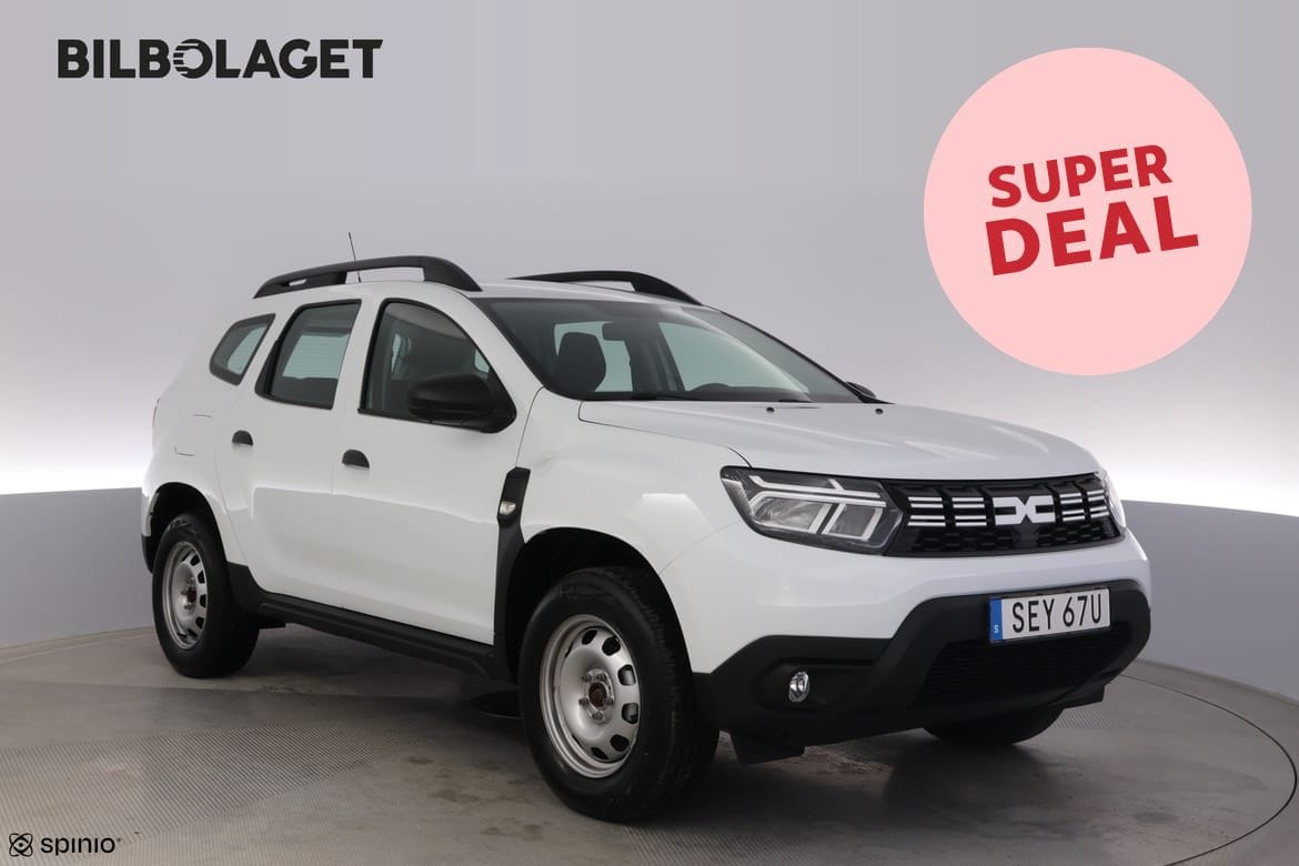 Rejält fyndläge! Detta är en av våra utvalda superdeals. Det innebär att vi sänkt priset och att du får lägre ränta. Denna bil är testad och godkänd av en utbildad mekaniker. På vår hemsida kan du gratis få bilens CARFAX-rapport, se garantier och bilder på eventuella skador. Bra va?! Upptäck friheten med denna Dacia Duster, en mellanstor SUV som rymmer både familj och packning med sina fem sittplatser och ett bagageutrymme på 478 liter. Den vita karossen kombineras med takbågar och kromdetaljer på frontgrillen som ger både stil och funktion. Den 1.0 TCe-motorn tillsammans med 6-växlad manuell växellåda och framhjulsdrift gör bilen smidig i stadstrafik och på landsväg. Med farthållare och Ecomode kan du hålla jämnt tempo och enkel körkomfort på längre sträckor. Inuti hittar du eluppvärmda framstolar, justerbar ratt höjd och djup, samt manuell luftkonditionering som håller bilen behaglig oavsett väder. Färddator och däcktrycksövervakning ger dig koll på resan utan att du behöver gissa. Parkeringssensorer fram och bak, Hill Start Assist och anti-sladdsystem ESP gör varje manöver trygg och enkel. Med ISOFIX-fästen för barnstol och 1/3-2/3 fällbart baksäte blir bilen redo för både vardag och längre äventyr.