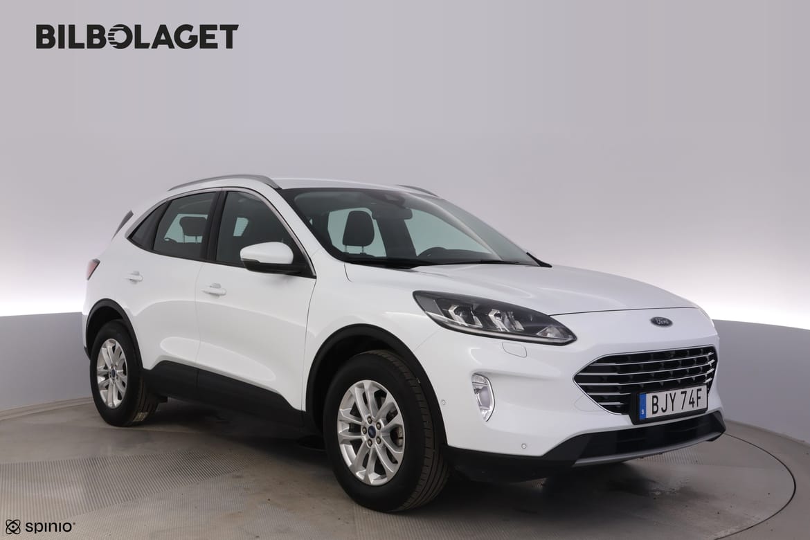 För din trygghet är denna bil noggrant kontrollerad och du får CARFAX-rapporten gratis på vår hemsida. Där kan du även läsa om bilens garanti, se bilder på eventuella skador, få offert på finansiering samt räkna ut vad bilen kostar med skatt och försäkring. Du kan också värdera din nuvarande bil och få svar direkt. Klicka på länken eller kopiera och klistra in den i din webbläsare: bilbolaget.nu/bilar-i-lager/?regno=BJY74F Den här Ford Kuga 1.5 Titanium är perfekt om du vill ha en mellanstor SUV med bra utrymme för både vardag och småäventyr. Med fem sittplatser och ett bagage på 435 liter finns det plats för både familj och packning, samtidigt som framhjulsdriften ger trygg körning på vanliga vägar. I vinter blir resan smidigare med vinterpaket TIW, och du får uppvärmda ytterbackspeglar och en uppvärmd läderratt som gör kalla morgnar mycket behagligare. Dörruppslagsskydden skyddar bilen i trånga utrymmen, vilket gör parkering och stadskörning enklare. Tekniken underlättar verkligen vardagen. Parkeringssensorer fram och bak, aktiv parkeringsassistans och en främre kamera hjälper dig att manövrera tryggt. För längre resor finns adaptiv farthållare och TrafficJam Assist som tar bort stressen i tät trafik, och Intelligent Speed Assist tillsammans med vägskyltscanning håller dig uppdaterad om hastighetsgränser. Säkerheten är också i fokus med dödavinkelnövervakning som varnar dig vid filbyten. Den manuella 6-växlade växellådan ger kontroll över körningen, och den vita karossen tillsammans med den rymliga och praktiska interiören gör Kuga till ett lättkört och flexibelt alternativ för dig som vill ha en SUV med genomtänkta funktioner.