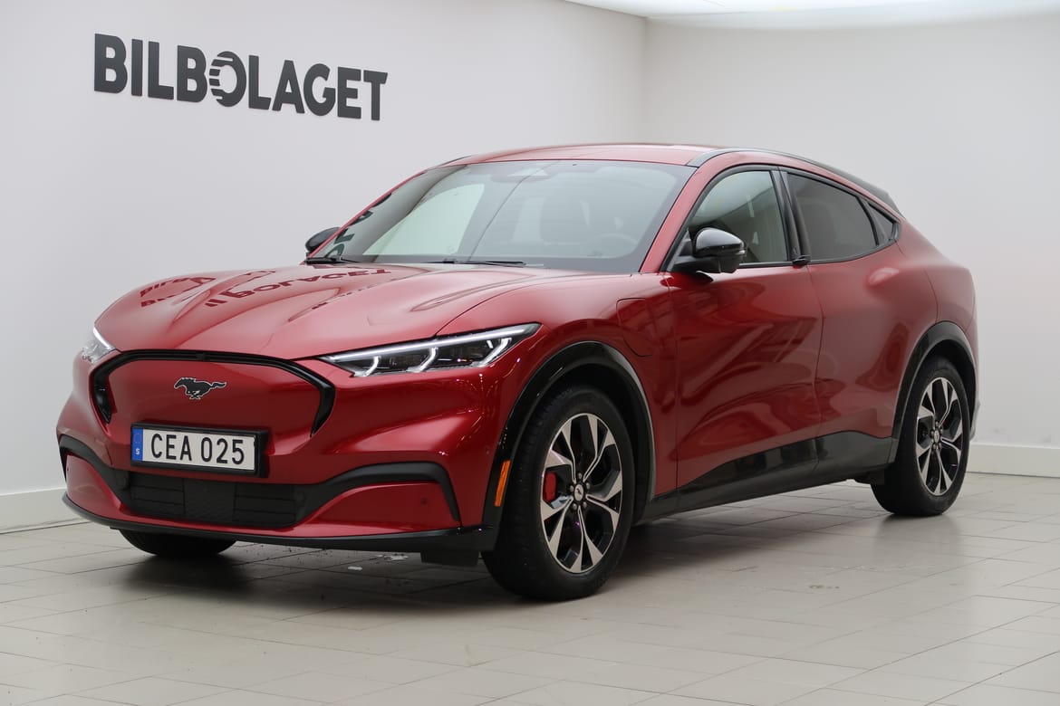 För din trygghet är denna bil noggrant kontrollerad och du får CARFAX-rapporten gratis på vår hemsida. Där kan du även läsa om bilens garanti, se bilder på eventuella skador, få offert på finansiering samt räkna ut vad bilen kostar med skatt och försäkring. Du kan också värdera din nuvarande bil och få svar direkt. Klicka på länken eller kopiera och klistra in den i din webbläsare: bilbolaget.nu/bilar-i-lager/?regno=CEA025 Mustang Mach E med eldriven dual motor och fyrhjulsdrift ger snabb respons och trygg framkomlighet året runt. Automatisk växellåda gör körningen mjuk och avslappnad. Den stora pekskärmen med SYNC 4A samlar navigation och uppkoppling på ett intuitivt sätt. Bang Olufsen ljudsystem fyller kupén med kraftfullt ljud och Qi laddplatta håller mobilen redo utan sladdar. Alexa integration och digitalt förarinstrument ger modern kontroll i varje situation. Avancerade förarassistanssystem från Ford Co Pilot 360 hjälper dig att köra säkert och bekvämt. Adaptiv farthållare med Traffic Jam Assist, dödavinkelövervakning och autobroms med fotgängarvarning skapar trygghet i stadstrafik och på motorväg. Kamera runt om och parkeringssensorer fram och bak gör parkeringen enkel. Invändigt möts du av eljusterbara och uppvärmda säten, uppvärmd ratt och tvåzons klimatanläggning för hög komfort året runt. Handsfree baklucka och generöst bagageutrymme bak samt praktiskt förvaringsutrymme framtill ger smart lastning.