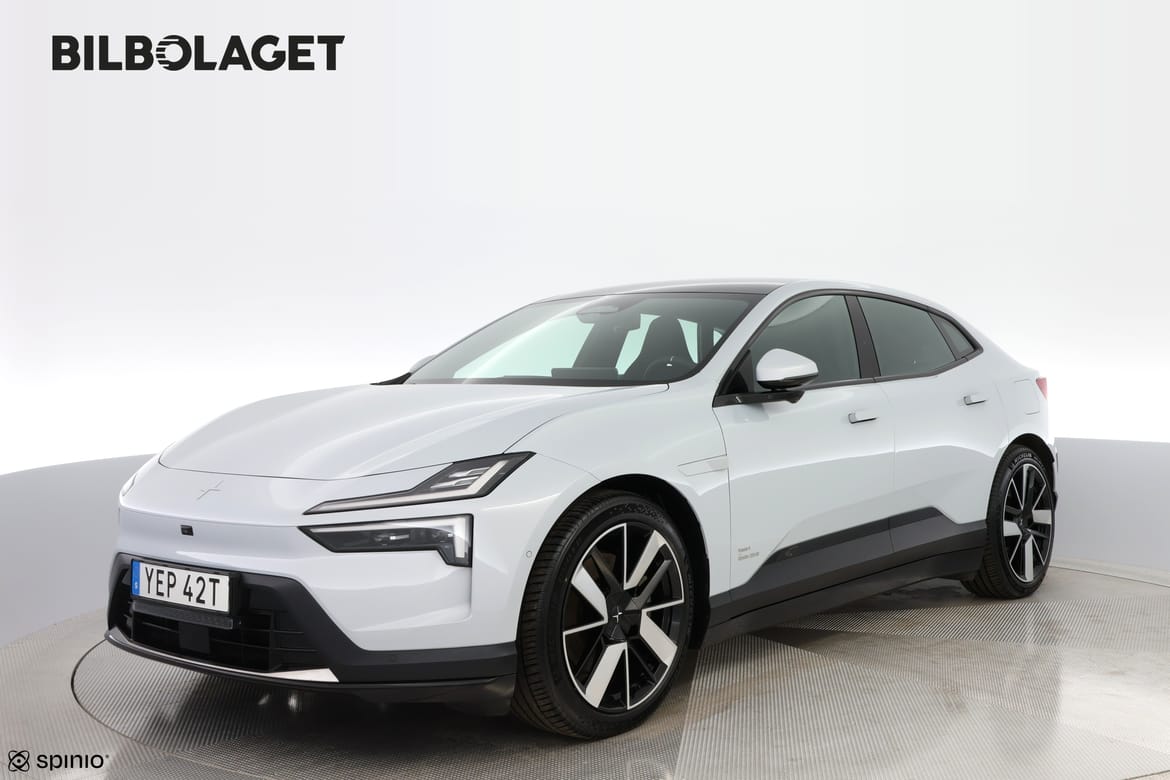 LRSM Business Edition | Plus | Pilot | 21" Sport För din trygghet är denna bil noggrant kontrollerad och du får CARFAX-rapporten gratis på vår hemsida. Där kan du även läsa om bilens garanti, se bilder på eventuella skador, få offert på finansiering samt räkna ut vad bilen kostar med skatt och försäkring. Du kan också värdera din nuvarande bil och få svar direkt. Klicka på länken eller kopiera och klistra in den i din webbläsare: bilbolaget.nu/bilar-i-lager/?regno=YEP42T Polestar 4 Long Range Single Motor är en helelektrisk SUV. Den starka elmotorn driver bakhjulen och levererar en följsam och kraftfull körupplevelse tillsammans med den smidiga automatväxellådan. Perfekt för både långa resor och daglig pendling. Med Pilot Pack och Plus pack får du avancerade förarassistanssystem som Adaptive cruise control, Lane Keeping Aid, Blind Spot Info med styrassistans och 360 vy med 3D kamera. Det gör varje körning tryggare och parkeringen enklare med både Park Assist och parkeringssensorer fram och bak. Säkerhetssystem som Cross Traffic Alert och Rear Collision Mitigation ger extra stöd i stadstrafik. Kupén bjuder på en modern och teknisk känsla med 15,4 centerdisplay och 10,2 förardisplay. High Performance Audio med 8 högtalare, Digitalradio DAB och Bluetooth ger en förstklassig ljudupplevelse. Panoramaglastak, interiört stämningsljus och 2 zons klimatanläggning skapar en ljus och komfortabel miljö för alla fem sittplatser. Praktiska lösningar som 500 liters bagageutrymme, fällbart baksäte 60 40 delning och flera USB C uttag fram och bak gör bilen redo för både familjeliv och äventyr. Trådlös laddare, Polestar Digital Key och 5G modem håller dig uppkopplad, medan 21 tum sporthjul och den silverfärgade exteriören ger ett uttryck som verkligen sticker ut.