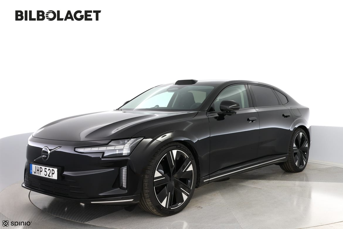 Köp vår demobil - din chans till en riktigt bra bilaffär. En demobil har använts för att visa upp det fina med en viss modell. Därför är de ofta välutrustade med populära tillval. De har gått få mil, blivit väl omhändertagna och har fortfarande nybilsgarantin kvar. Vi lämnar generösa rabatter på våra demobilar, så här får du väldigt mycket bil för pengarna. Då bilarna ibland fortfarande används reserverar vi för miltalet. Vinterhjul ingår ej. Kontakta oss för aktuell mätarställning. Tidigaste möjliga datum för leverans: Juli 2026 Volvo ES90 Single Motor Extended Range Ultra är en helelektrisk premiumbil med kraftfull och jämn prestanda. Elmotorn driver bakhjulen och ger en tyst, följsam körupplevelse i perfekt samspel med den smidiga automatlådan. Den generösa räckvidden gör bilen lika självklar för långresor som för daglig pendling. Utrustningsnivån Ultra erbjuder en genomtänkt kombination av teknik och komfort. Aktiv chassi luftfjädring anpassar sig efter vägen och ger både dynamik och hög åkkomfort. Pilot Assist tillsammans med Adaptive Cruise Control och Head Up Display gör körningen avslappnad och säker, oavsett tempo. Kupén är skapad för att ge en exklusiv upplevelse varje dag. Bowers and Wilkins ljudsystem levererar en förstklassig ljudbild, medan komfortstolar i Nordico med eljustering, minne, svankstöd och ryggmassage ger maximal bekvämlighet. Fyra zoners klimatanläggning, rattvärme och baksätesvärme ser till att alla passagerare sitter behagligt året runt. Tekniken är lika imponerande som komforten. 360 parkeringskamera, Park Pilot Assist och parkeringssensorer fram och bak gör parkeringen enkel. Google Maps, Google Assistant och Apple CarPlay håller dig uppkopplad, och värmepumpen optimerar räckvidden även under kalla dagar. En modern elbil som engagerar från första metern.