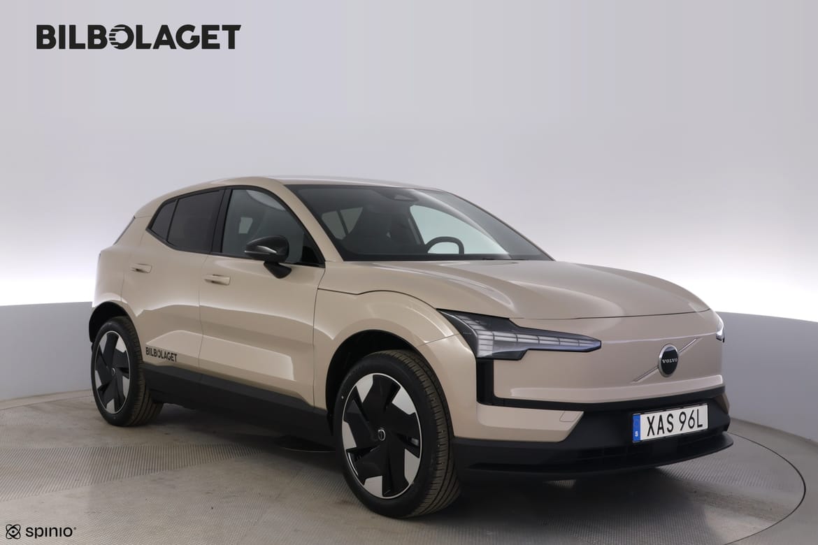 Köp vår demobil-din chans till en riktigt bra bilaffär En demobil har använts för att visa upp det fina med en viss modell. Därför är de ofta välutrustade med populära tillval. De har gått få mil, blivit väl omhändertagna och har fortfarande nybilsgarantin kvar. Vi lämnar generösa rabatter på våra demobilar, så här får du väldigt mycket bil för pengarna. Då bilarna ibland fortfarande används reserverar vi oss för miltalet. Kontakta oss för aktuell mätarställning. OBS! Vinterhjulen på bild ingår ej! Tidigast datum för leverans: maj/juni 2026 Har du några frågor om bilen hjälper våra säljare dig gärna. Vi erbjuder trygg finansiering, bra försäkringar samt drivmedelskort med rabatt och bonus. Dessutom är vi auktoriserad verkstad och har däckhotell. Allt du och din nya pärla behöver under ett och samma tak alltså. Volvo EX30 Single Motor Extended Range Plus är en modern liten SUV med eldrift och bakhjulsdrift som ger en engagerande och smidig körupplevelse. Den automatiska växellådan ger sömlös acceleration och den elektriska motorn levererar direkt kraft utan fördröjning. Extended Range innebär längre räckvidd och mer frihet i vardagen. Plusnivån ger en hög tekniknivå med 12,3 tum touchskärm och integrerade Google Maps, Google Assistant och Google Play Store i fyra år. Harman Kardon Premium Sound ger ett kraftfullt och klart ljud. Apple CarPlay, digital nyckel och induktiv laddning för smartphone gör varje resa uppkopplad och enkel. Adaptiv farthållare, Lane Keeping Aid, Cross Traffic Alert och parkeringssensorer fram och bak tillsammans med parkeringskamera bak gör körningen trygg och smidig i alla lägen. Värmepump, rattvärme och eluppvärmda framstolar ger hög komfort året runt. Elmanövrerad baklucka och dragkrok gör bilen praktisk för både vardag och fritid. Som helt ny bil får du den senaste tekniken, full trygghet och inga tidigare brukare. Du får en effektiv elbil med låg årlig fordonsskatt och moderna säkerhetssystem som Safe Space Technology. En framtidssäker SUV med fem sittplatser och smarta förvaringslösningar som passar både familj och aktiv livsstil.