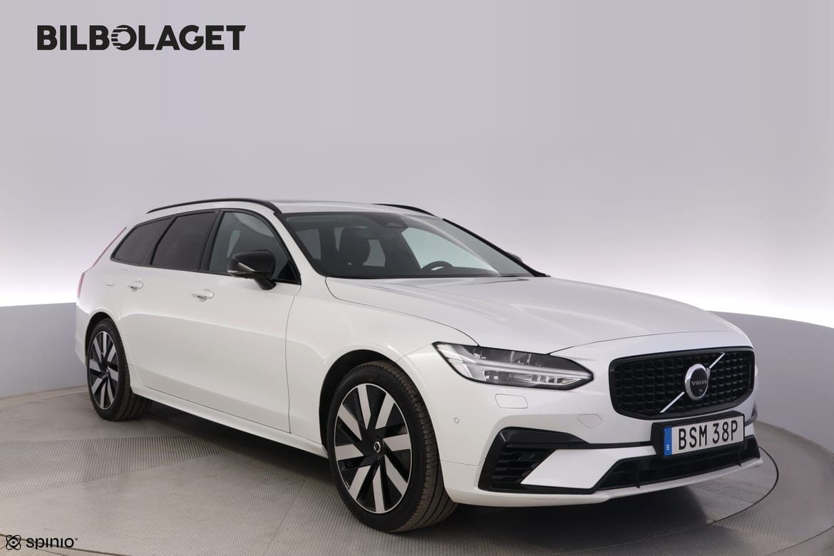 För din trygghet är denna bil noggrant kontrollerad och du får CARFAX-rapporten gratis på vår hemsida. Där kan du även läsa om bilens garanti, se bilder på eventuella skador, få offert på finansiering samt räkna ut vad bilen kostar med skatt och försäkring. Du kan också värdera din nuvarande bil och få svar direkt. Klicka på länken eller kopiera och klistra in den i din webbläsare: bilbolaget.nu/bilar-i-lager/?regno=BSM38P Volvo V90 T6 Plus Dark Edition kombinerar kraft och elegans med en laddbar bensinmotor och fyrhjulsdrift som ger trygg framkomlighet året runt. Den automatiska växellådan levererar mjuka växlingar och en smidig körupplevelse, perfekt för både stad och långresor. Utrustad med Pilot Assist och adaptiv farthållare får du en avslappnad och säker körning där bilen hjälper till att hålla avstånd och position i körfältet. 360 graders parkeringskamera tillsammans med parkeringssensorer fram och bak gör parkering enkel och stressfri i alla lägen. Interiören erbjuder hög komfort med elmanövrerade läderstolar, rattvärme och panoramaglastak som skapar en ljus och luftig känsla i kupén. Harman Kardon Premium Sound med subwoofer ger ett kraftfullt och klart ljud som lyfter varje resa. Praktiska funktioner som halvautomatisk dragkrok och generös bagagevolym gör bilen redo för både vardag och äventyr. Med integrerade Google tjänster, Apple CarPlay och head up display har du alltid smart uppkoppling och viktig information direkt i ditt synfält.