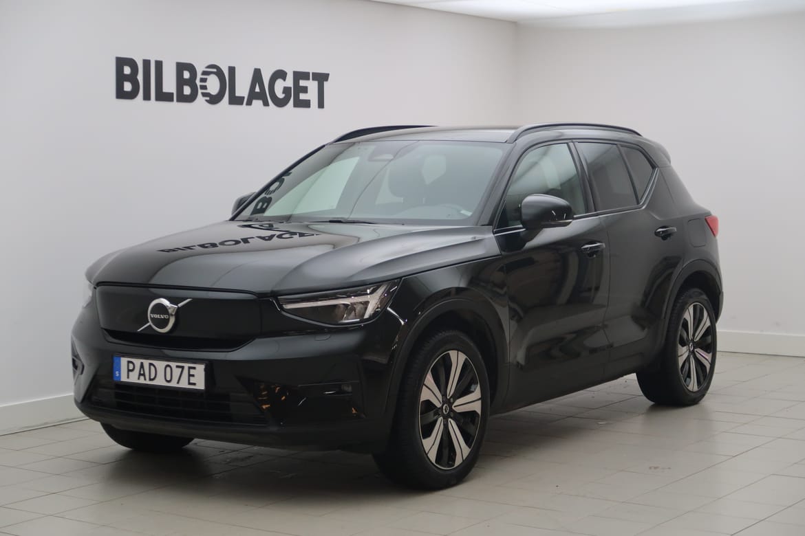 För din trygghet är denna bil noggrant kontrollerad och du får CARFAX-rapporten gratis på vår hemsida. Där kan du även läsa om bilens garanti, se bilder på eventuella skador, få offert på finansiering samt räkna ut vad bilen kostar med skatt och försäkring. Du kan också värdera din nuvarande bil och få svar direkt. Klicka på länken eller kopiera och klistra in den i din webbläsare: bilbolaget.nu/bilar-i-lager/?regno=PAD07E Volvo XC40 Recharge Twin Motor Plus är en helelektrisk SUV med kraft och kontroll i varje läge. Två elmotorer och fyrhjulsdrift ger snabb respons, stark acceleration och trygg framkomlighet året runt. Den smidiga automatlådan ger en tyst och följsam körupplevelse. Plusnivån tillsammans med Klimatpaket ger hög komfort oavsett säsong. Värmepump, rattvärme, eluppvärmda fram och baksäten samt eluppvärmda spolmunstycken ger snabb uppvärmning kalla dagar. Klimatautomatik med två zoner och luftkvalitetssystem AQS skapar en behaglig miljö för alla fem passagerare. Google Maps, Google Play Store och Google Speech är integrerat i bilen och gör varje resa uppkopplad och enkel. Digital förardisplay 12,3 tum och digitalradio DAB+ ger tydlig information och underhållning. Induktiv laddning för smartphone, Apple CarPlay och röststyrning gör att du alltid är uppkopplad utan krångel. Parkeringskamera bak och parkeringssensorer fram och bak gör parkeringen smidig i stadsmiljö. LED strålkastare, mörkt tonade rutor och 19 tum 5 D Spoke Black fälgar ger ett modernt och kraftfullt uttryck. Elmanövrerad baklucka och flexibelt bagageutrymme på 443 liter med delbart baksäte 40 60 gör bilen lika praktisk som den är dynamisk.
