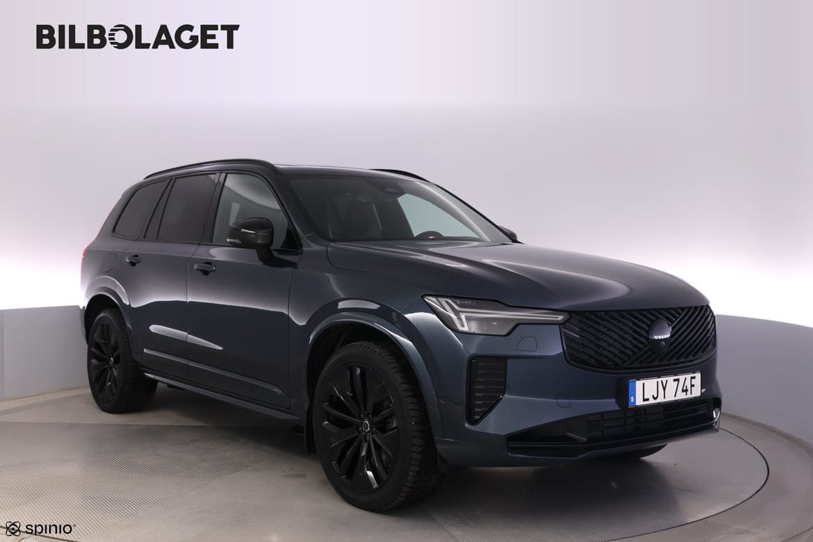 Köp vår demobil-din chans till en riktigt bra bilaffär En demobil har använts för att visa upp det fina med en viss modell. Därför är de ofta välutrustade med populära tillval. De har gått få mil, blivit väl omhändertagna och har fortfarande nybilsgarantin kvar. Vi lämnar generösa rabatter på våra demobilar, så här får du väldigt mycket bil för pengarna. Då bilarna ibland fortfarande används reserverar vi oss för miltalet. Kontakta oss för aktuell mätarställning. Tidigast datum för leverans: maj 2026 Volvo XC90 T8 Ultra Black Edition är en kraftfull laddhybrid med bensinmotor och automatlåda som ger en mjuk och responsiv körupplevelse. Fyrhjulsdriften ger trygg framkomlighet året runt och gör bilen lika självklar i stadstrafik som på längre resor. Den generösa sju sitsiga kupén kombinerar flexibilitet och komfort med exklusiva material som nappaläder och nubuck. Framstolar med eljustering och ryggmassage höjer komforten ytterligare medan fyrzons klimatanläggning och uppvärmda säten gör varje resa behaglig för alla passagerare. Tekniknivån är hög med head up display, Google integrerade tjänster och ett kraftfullt ljudsystem från Bowers and Wilkins som ger en förstklassig ljudupplevelse. Panoramaglastaket släpper in ljus och skapar en luftig känsla i hela kupén. Avancerade förarassistanssystem som Pilot Assist, 360 kamera och adaptiv farthållare gör körningen både enklare och säkrare. Luftfjädring ger en följsam körkomfort och den halvautomatiska dragkroken gör bilen redo för både vardag och fritid.